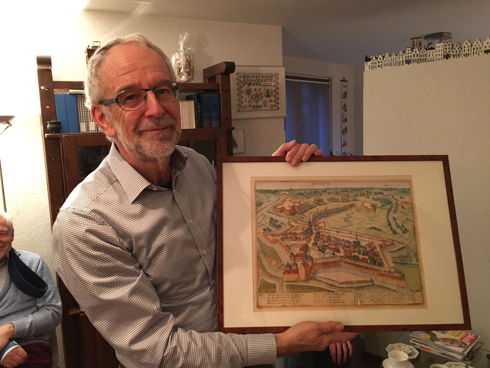 Onwetend werd ik gelokt naar een bijeenkomst van fractie en afdelingsbestuur om mijn definitief vertrek uit de gemeentepolitiek te mark(voorzitter)eren. Naast warme woorden en dank, kreeg ik een oude kaart van de stad Eyndhoven een tekening van situatie rond 1583.